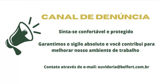 Os registros de denúncias, sugestões e dúvidas podem ser realizados por meio do e-mail ouvidoria@belfort.com.br. Os nossos ouvidores estão à disposição para receber e tratar todo e qualquer tipo de relato que desrespeitar nosso Código de Conduta e Transparência. Sendo garantida a preservação da sua identidade.
